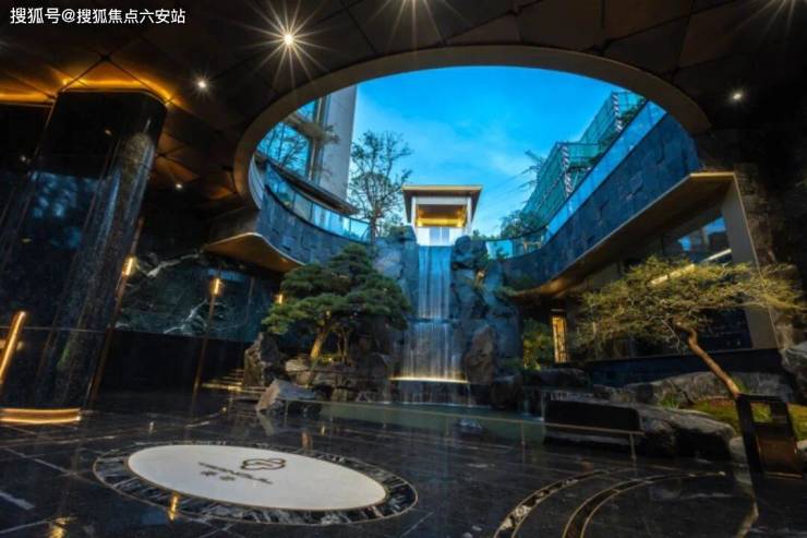 利用高差优势,安云玖院匠心营造一座7米高浓缩山林、溪涧、叠瀑于一体的“立体山峡”中庭景观。整个景观庭院全奢石铺就,没有一块砖!飞瀑旁一棵斜飘式进口黑松“旭日龙鳞”,树龄300年价值200万,更有进口龙梅、羽毛枫、杜鹃球等一同构成 “门庭名树群落”,为业主营造极为尊崇的归家威仪!