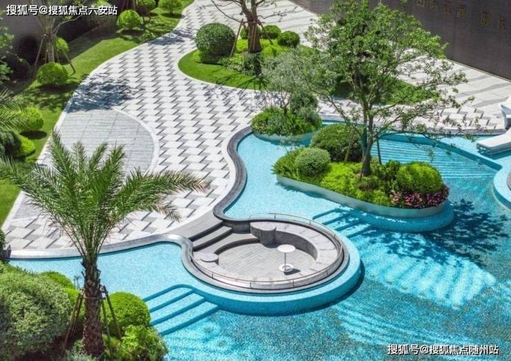 泳池、健身、喷泉花园、风雨廊、层叠式现代风格景观,所在公区一应俱全,极其“住宅风”的设计语言,又远比住宅的可使用面积和人均配套奢侈得多;