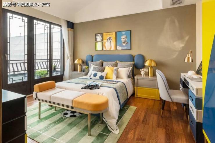 考虑到孩子应有的俏皮与活动,整个空间运用黄色与蓝色为主色调。带来个性又鲜明的视觉效果 。 细节设计同样充满了运动风格艺术色彩,地毯的造型,以装饰画、玩偶的摆放,也为空间增加了适用性和趣味性。太阳通过落地窗倾巢而入,孩子可以在这样的通透舒适的空间创作、感受。同时也起到培养热爱运动锻炼的效果。