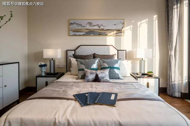 卧室挑选花纹素雅暗肌理打造典雅精致的休息空间。中式素雅色彩多沉稳持重,沉静而内涵韵味。