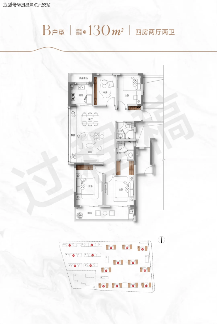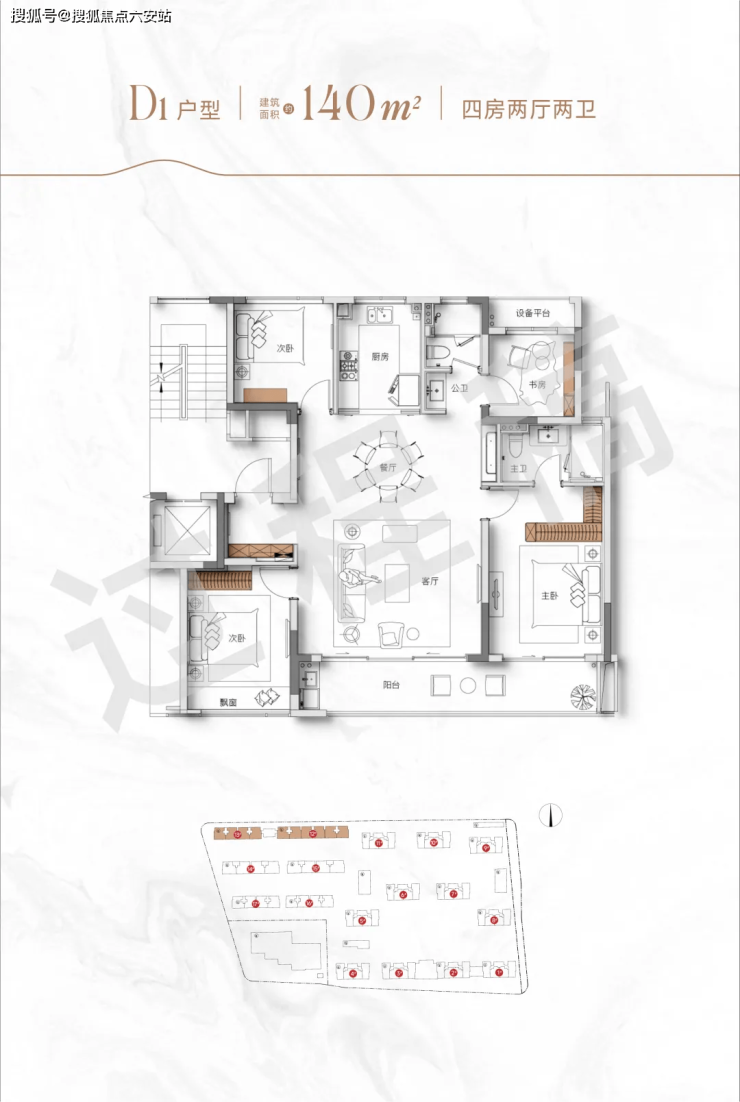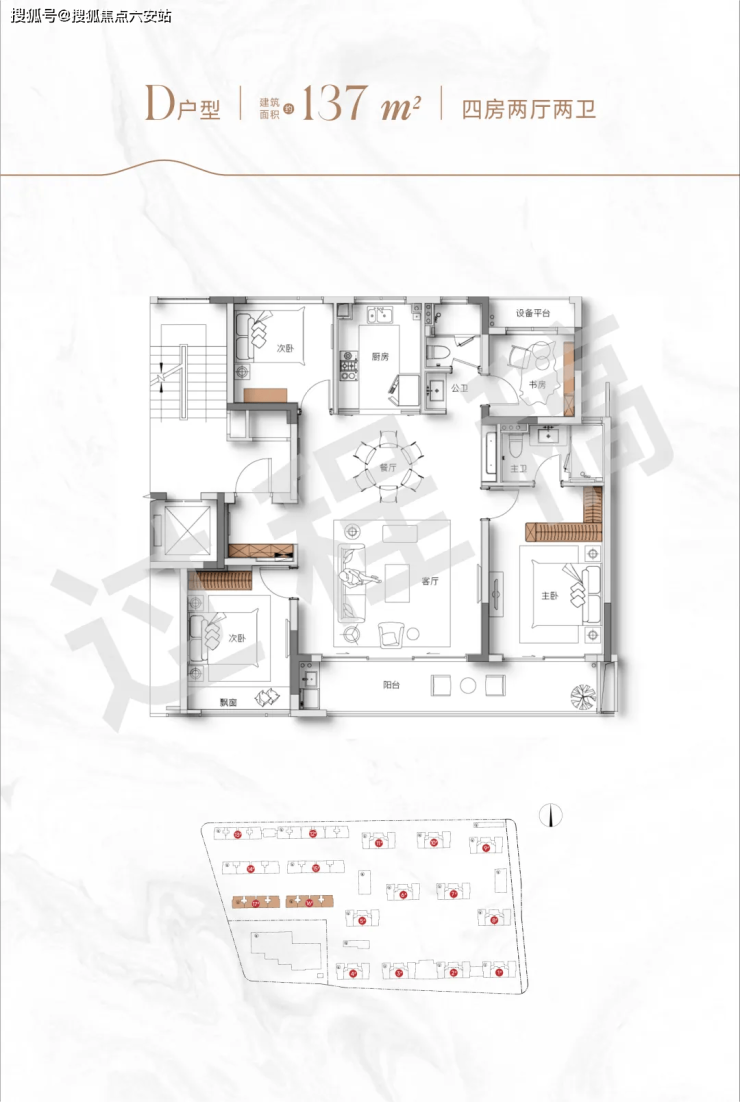 137㎡四房两卫:12米面宽客厅连接转角飘窗,主卧配置270°观景飘窗+独立衣帽间