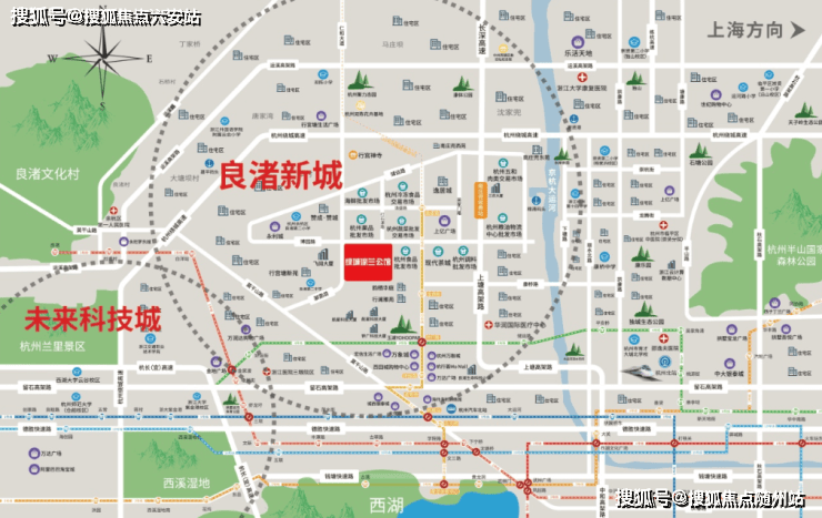 项目择址良渚新城中央活力区(CAZ),紧邻地铁10号线逸盛路站(直线约800米),3站直达钱江新城,5站至武林商圈,周边上塘高架、秋石高架等立体路网通达全城。