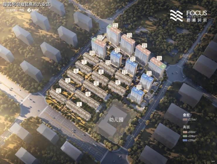 产品类型:高层(17-18层,108-139㎡)、叠墅(4层,225㎡)