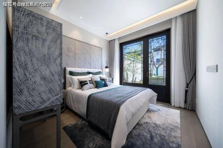 卧室则是心灵的庇护所,新东方风格的卧室以其宁静舒适的氛围,让您在疲惫的一天后得到充分的放松。柔软的床品搭配精致的床幔,给人一种如梦如幻的感觉。床头的一盏古色古香的台灯,散发着柔和的光线,为您营造出一个温馨的阅读角落。半开放式的浴缸和卧室融为一体,大大增加了生活的舒适感。