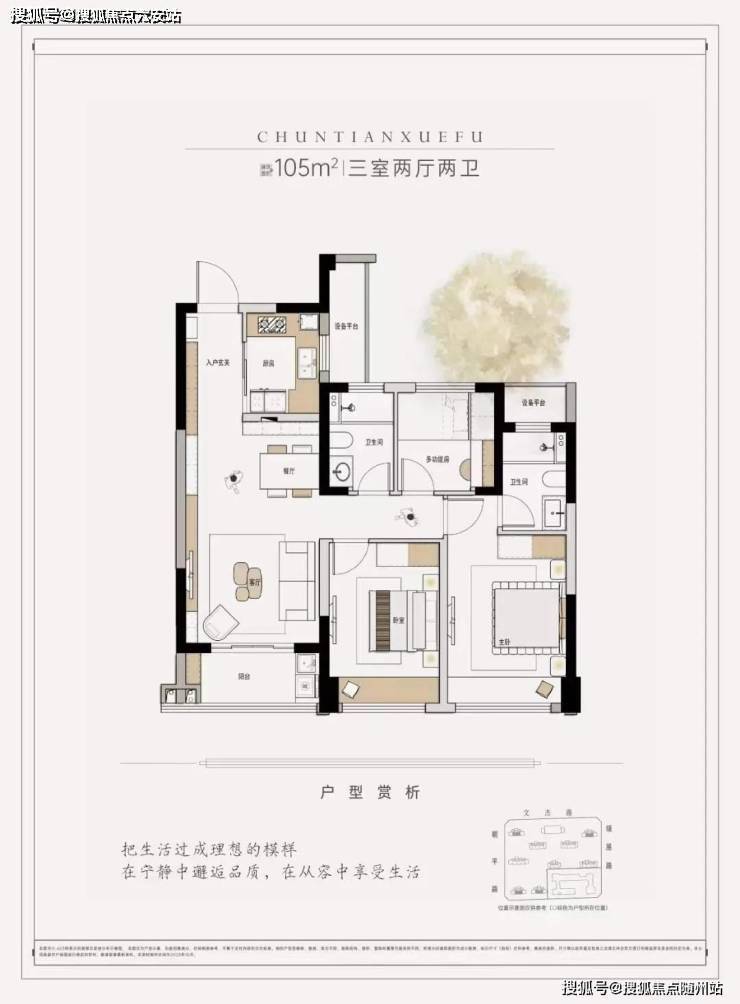 建面约105方,三房两厅两卫
