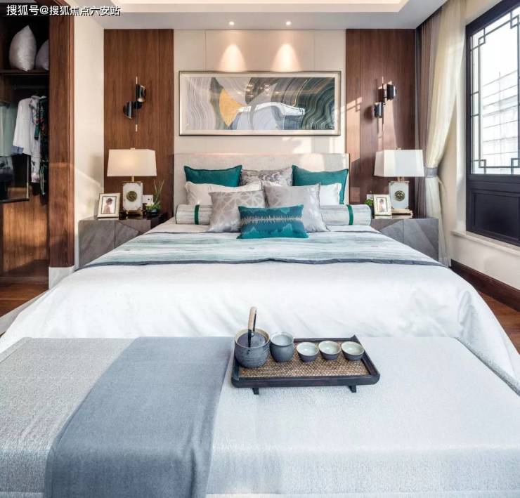 卧室挑选花纹素雅暗肌理打造典雅精致的休息空间。中式素雅色彩多沉稳持重,沉静而内涵韵味。