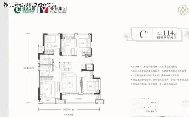 100方三房两卫,114方、125方四房两卫,一梯两户,高得房率