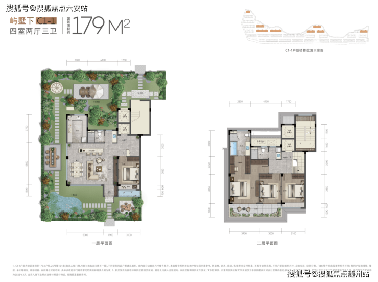 以最近加推的179㎡下叠为例,整体是四房三卫的空间格局。