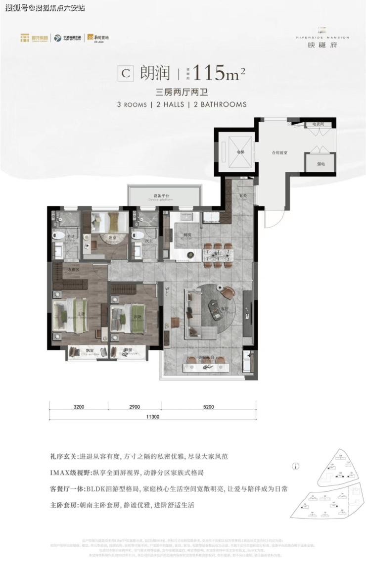 亮点2:南向5.2米大宽厅,北侧设置设备平台(约5-6m²),增加实用空间