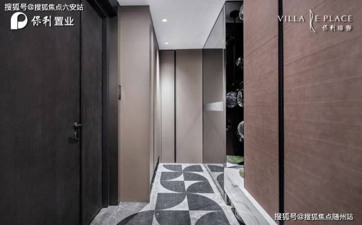 北京三里屯一号同款的山河万象奢石背景墙,甚至连玄关柜柜门,都用了意大利头层小牛皮压花编织纹,美学与品质兼备。