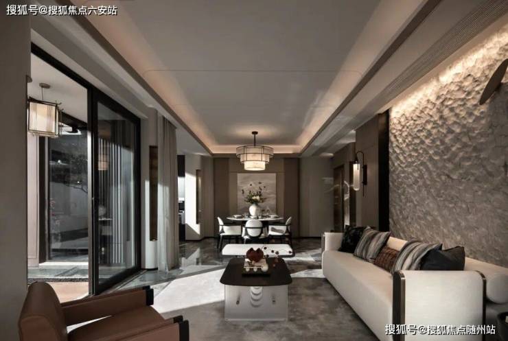 归家动线:王府般的恢弘大门后,四水归堂如繁星洒落,星光与灯光倒映水庭,营造270度景观大堂的归家仪式感。沿水庭回廊前行,烟染庭水榭、四景凉亭、飞瀑假山,每一步皆是诗画。