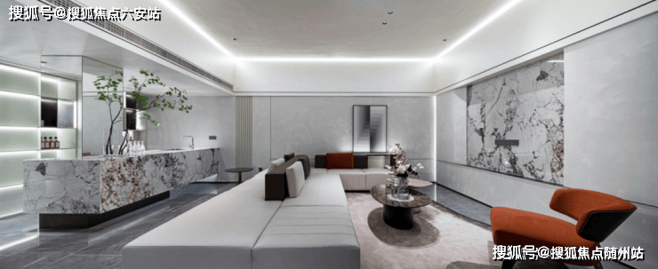 地下二层的会客厅是真富丽堂皇,大挑高的空间配上大吊灯,调性十足;高5.1米的巨型岩板使空间看起来很灵动。当然,所有装修风格以业主的主观意识为主,项目整体以毛坯交付,可以顺心而为。