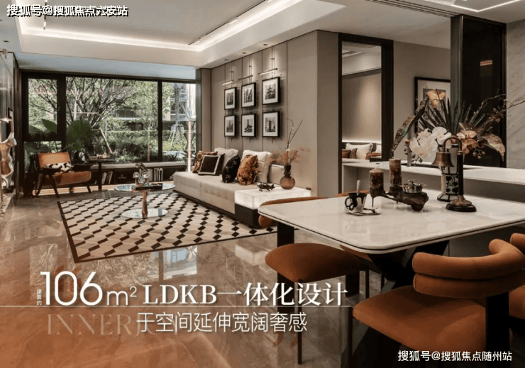 相当于该户型从入户玄关开始,厨房、餐厅、客厅、阳台空间串联,实现一镜到底的LDKB一体化场景空间。在宛如“四厅一线的社交场”,聚会开趴、唱歌观影、下午茶会等多重场景随心解锁,欢畅而不拥挤。