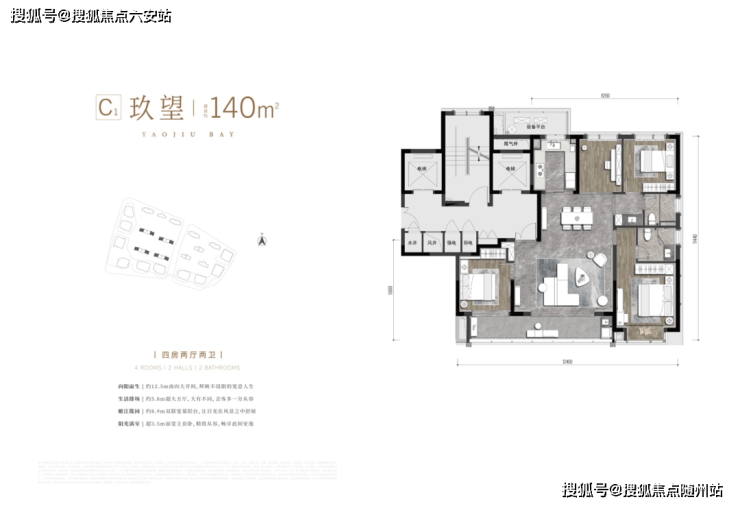 如建筑面积约140㎡的边套户型,完全跳脱了传统意义上的“边套”概念,每一户都拉出了约12.5米的南向面宽。