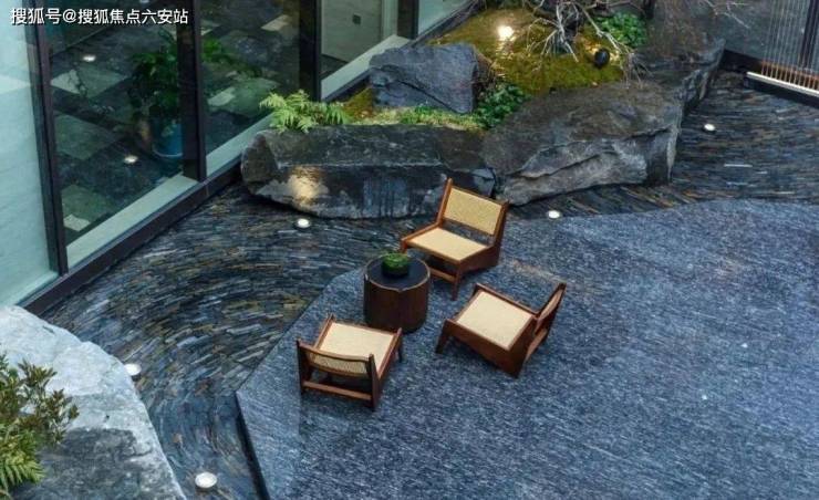 而门口的墙面,更是用大理石与绿植山石装裱出一幅立体的山水画,在垂直立面上演绎“石中有画,画中有境”的宋式空间美学。