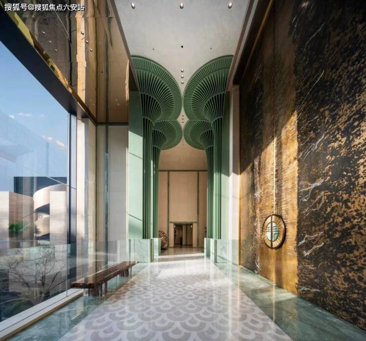 近10米巍峨铜门+玉柱屏风+折扇图腾,归家即享东方礼序。