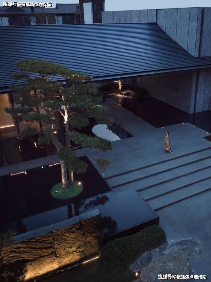 下沉庭院:落地窗引山石松影入室,如游山水画卷;