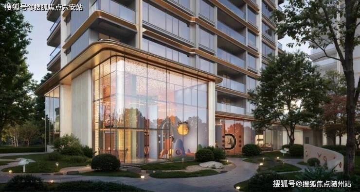 潮映杭园的建筑外立面采用铝板搭配大面玻璃和金色格栅顶冠,公建化立面设计展现出现代简约的美学风格。外立面材质选择上,项目选用玻璃、金属板材和石材,拒绝使用涂料或面砖,保证了立面的持久如新。