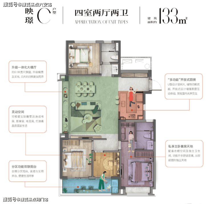 建面约130㎡、133㎡户型则是改善家庭的最爱,均是四房户型。