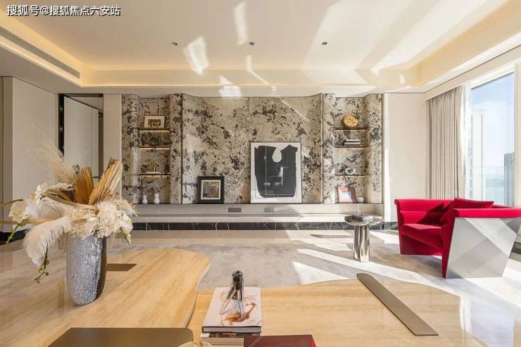 玄关处,整面渐变曲面艺术玻璃,映射若隐若现的江景;客厅中,钱塘江的柔美曲线,融入弧形吊顶与奢石拼花;19米的超大面宽,以270°环绕视野尽揽钱塘江景,让江河倒影和城市天际线在家中交汇。这是建筑与自然的对话,更是生活与艺术的融合。