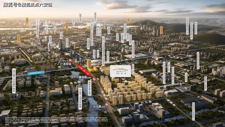 该项目体量约63万平方米,为地铁车辆段上盖TOD,南北向纵跨杭州地铁9号线兴元路站和康信路站。