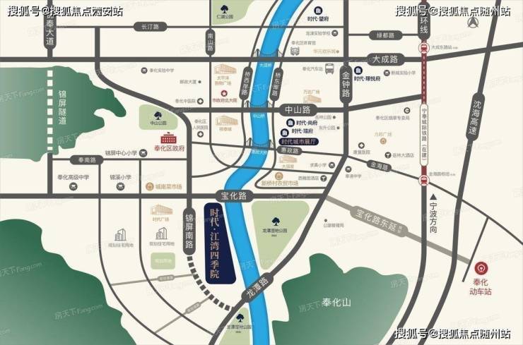 项目位于奉化主城更新核心区,紧邻宝化路、锦屏南路等主干道,距地铁金海路站约4公里,机场快速路贯通后直抵栎社机场。周边20余条公交线路环绕,出行便捷。