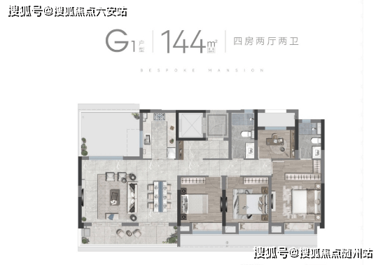 洋房-G户型144m²】4室2厅2卫