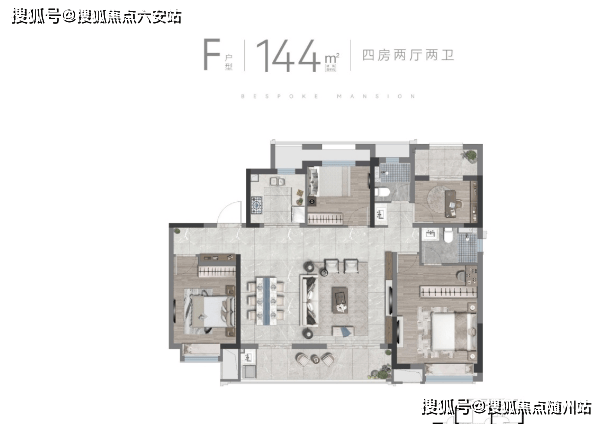 小高层-F户型144m²】4室2厅2卫