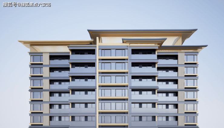 项目建筑采用中式飞鸟檐设计,四面铝板材质搭配金属线条修饰+大幅玻璃,南向最大窗墙比近35%......整体外立面美观大气,同时具备辨识度。