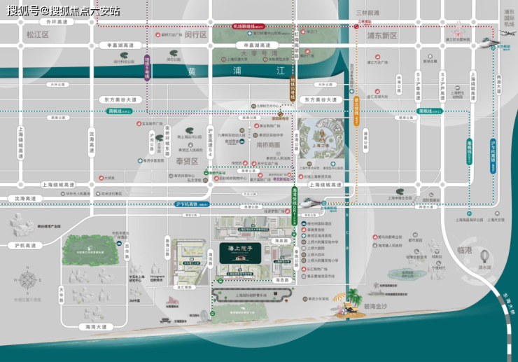 立踞奉贤海湾旅游区,坐享6大城市森林,万余亩海湾森林公园、25公里绵延海岸线,构建起磅礴富氧生态圈,尽享诗意生活场。