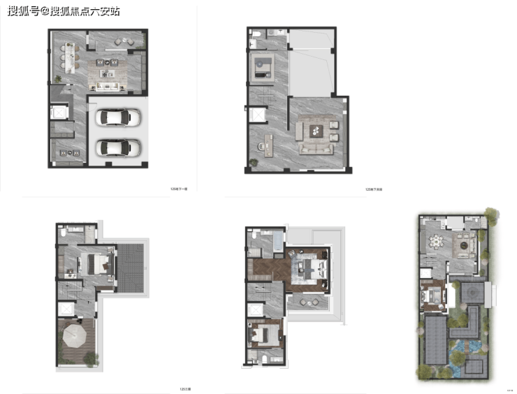 约125㎡的明星户型做到了5套房设计,地下一层、地上三层的空间形态,将空间尺度无限放大。