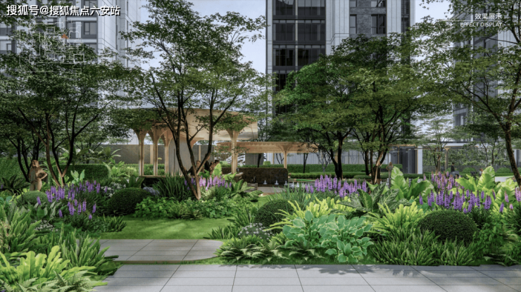所以,你能在璞云东方中看到两个围合园林,其中穿插着小景观和比同类产品更大的阳光草坪。加上仅14层的“小高层”形态,你能体验到低密项目一般的视野和采光。
