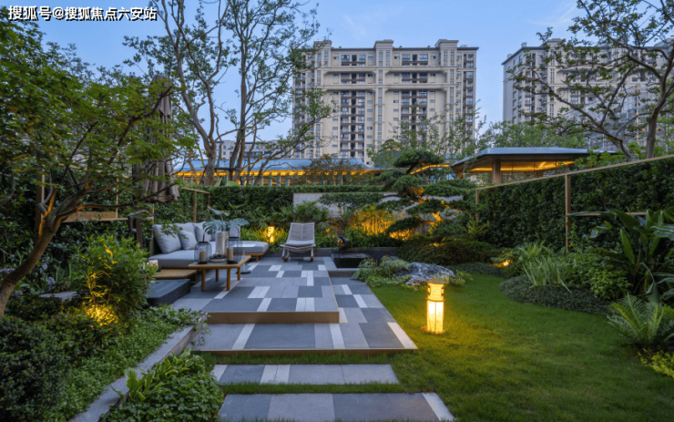从入口处的流瀑景观到园中的罗汉松,每一处细节都彰显匠人精神,黑金砂石铺装经手工打磨,呈现自然纹理,叠水景观的流水声如丝竹之音,营造出“蝉噪林逾静,鸟鸣山更幽”的意境,就连园中的石凳、石桌,也均以天然石材雕刻而成,与周围环境融为一体。