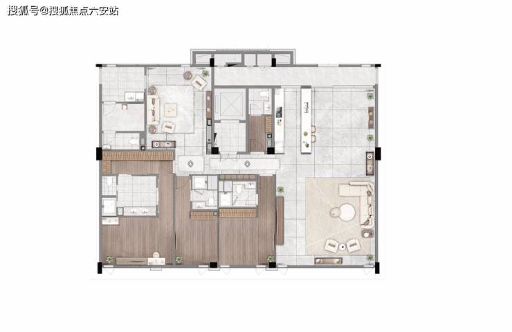 · 空间尺度:建面约315㎡主力户型采用“大开间+大进深”设计,层高约3.6米,空间通透感极强;开放式客餐厅连通景观阳台,形成“社交+休闲”的复合场景;独立玄关与双主卧配置,满足商务接待与家庭生活的双重需求。