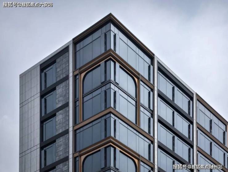 飞虹屏美学立面:首创“天空微笑”视觉标识,通过R角金属线框、流云灰玻、釉面陶板与大面积玻璃幕墙组合,形成金色弧线立面,兼具现代感与艺术辨识度。