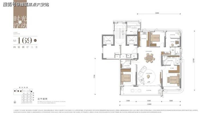 各个功能间尺度的全面升级。仅169方就做到了南向面宽约13米,双联的超宽阳台进深约2米......的超级尺度。