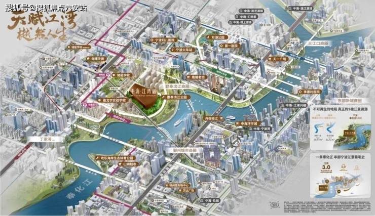 中海·江湾樾,择址海曙鄞奉滨江,依托优越的发展前景及醇熟配套,融合区域性占位的高阶城市资源,承接四大硬核板块优势,展现海曙新城芯的全维价值。