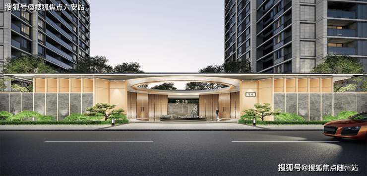 归家仪式感营造彰显尊贵体验,社区主入口借鉴四季酒店设计精髓,打造豪华酒店大堂式归家体验。以迎宾落客区、会所式大堂、摩尔会客厅的渐进式排布,勾勒出入境、入画、归影的三重归家仪制。回家从入户开始,酒店泊湾式环岛的落客区、汲取四季酒店精髓设计而成的会所式大堂、如入山水秘境般的摩尔会客厅,层层推进,营造归家仪式感。