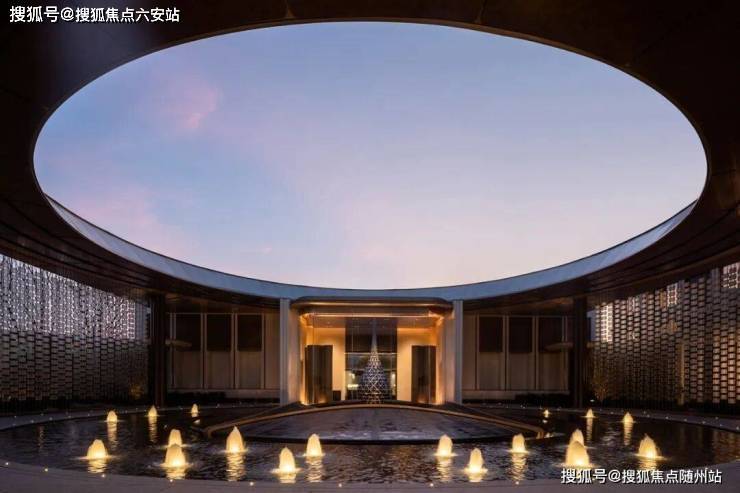 更令人震撼的是,过了序门后天圆地方的圆盘水景。中心是蓝色水滴,中圈是古钱币水景,外圈是艺术喷泉。