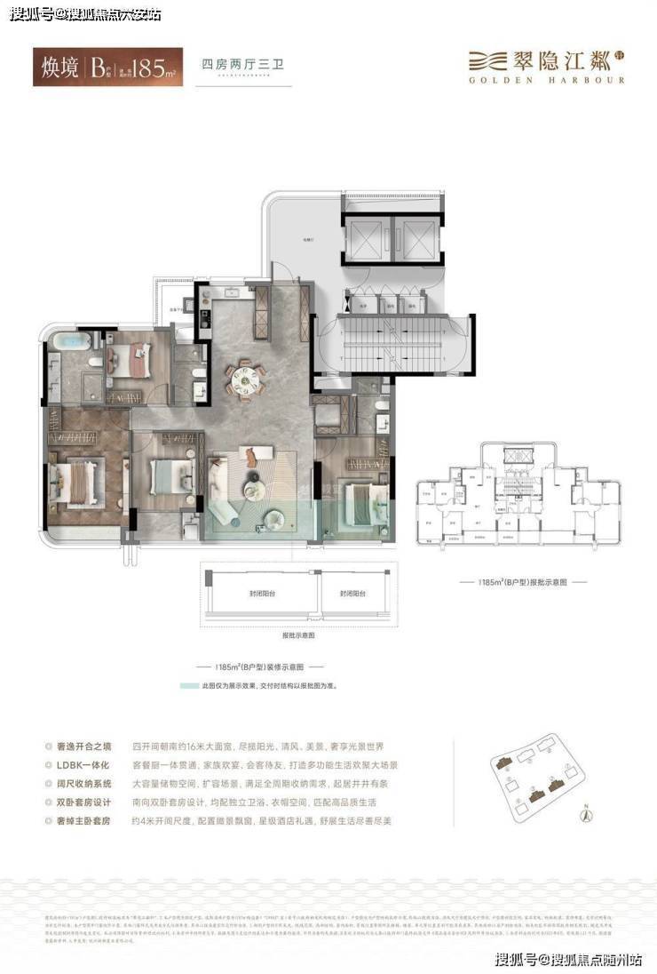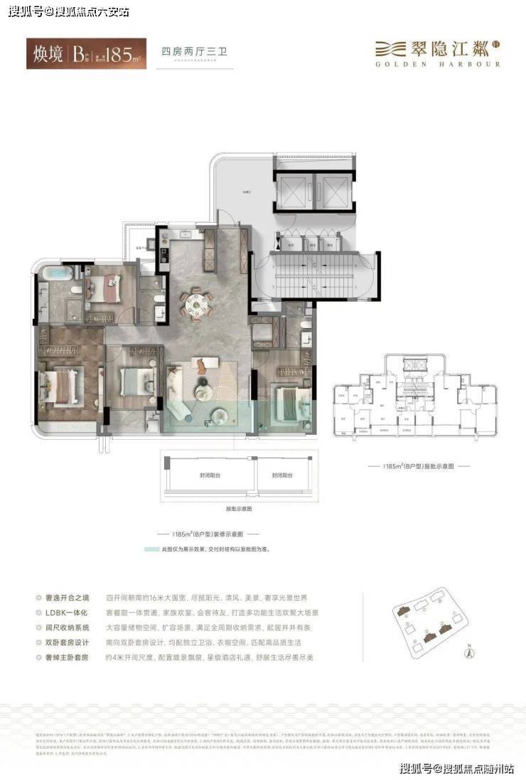 翠隐江粼三个户型建面约161方、约185方和约230方,分别是四房三卫和五房三卫的设计,而翠隐江粼的用心之处还在于承重墙的安排非常巧妙,这样有一些房间与房间之间,房间与客厅之间可以打通,形成更大尺度的舒适空间。
