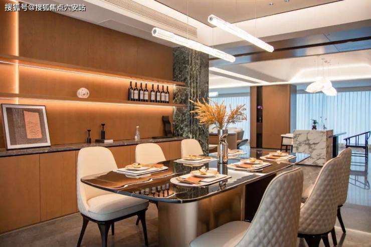 大门两侧设置光导纤维材质的门厅艺术装置,成为业主归家路上的指引焦点,时尚奢雅,给人以格调又恢弘大气的视觉冲击。内部大堂的高品质精装呈现,完美匹配生活的高度与身份的尊贵。采用大面积木饰面、布艺、金属材质、艺术奢石、光影氛围,从视觉、触感不同维度构建真实奢享的空间体验。