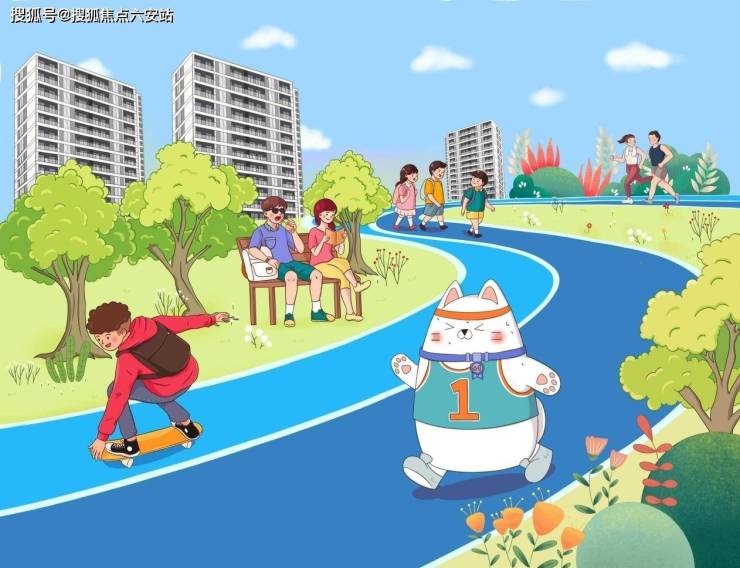1个运动环:围绕小区中央景观带,打造了约450m花园式跑道(相当于标准体育场的运动量标准),跑道上贴心地设置了里程标识等,方便业主清楚掌握健身进程。