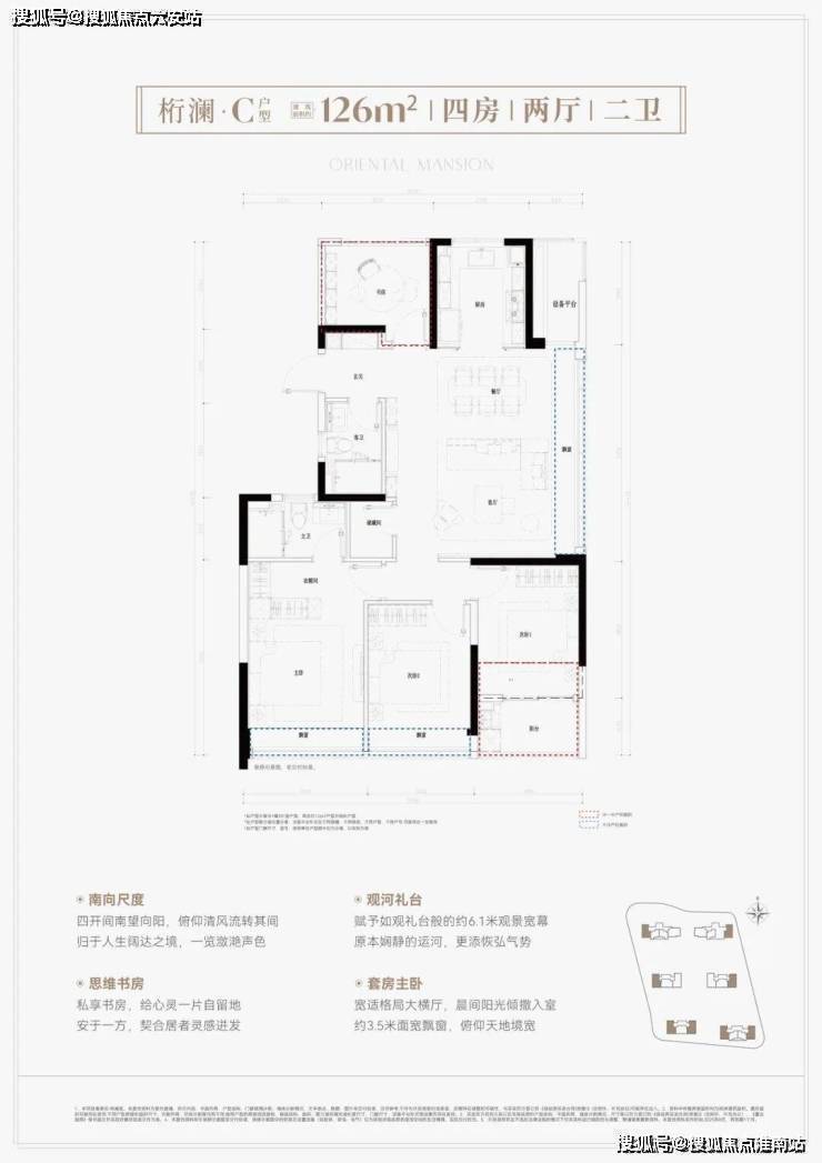 而约139㎡四居室则更显奢华,横版户型以四开间朝南、L型全景飘窗主卧和双联阳台,打造出“运河观景舱”的既视感;竖版则创新10米南向三开间设计,主卧配备3.5米飘窗与6.1米观景宽幕,仿佛将整条运河的壮阔美景都收入眼底。