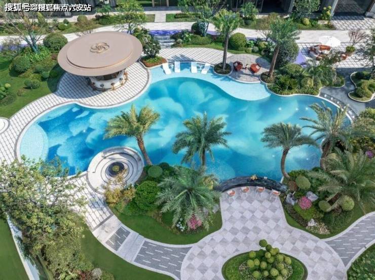 归家途中,穿过66米宽酒店式门楼,对植的名贵罗汉松与金属玻璃幕墙交相辉映,每一步都充满仪式感。园区内,棕榈树摇曳生姿,开放式酒廊与下沉卡座相映成趣,仿佛置身于热带度假胜地,让人忘却疲惫,尽享惬意时光。