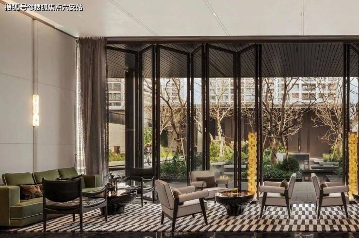 大堂的地下空间侧重实用性,约400㎡地下活动空间,包含健身房、儿童活动空间等。穿过大堂,则是一处泗水归堂的水景,不仅延续了豪门大宅的礼序,四季美景在这方小天地里总能流转出不同的模样,或晴时水光潋滟,或雨时四檐落珠,什么样的天气都不会破坏回家的好心情。