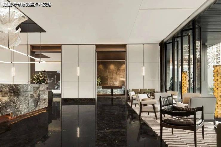 区别于杭州市面上普通的新房,无论是在社区形制,还是户型设计上,都拿出了超乎寻常的水准!是市面上独一份的精心设计。入口处大面的prada绿奢石处理,主墙面浅灰色石材搭配深灰色金属条勾勒,风格现代。火烧面和光面石材的组合,光与影的跃动之下,更显高级。