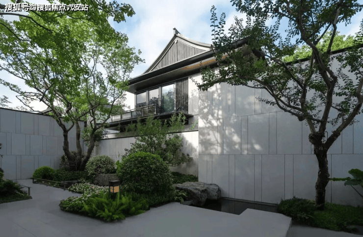 檐下空间:深邃出挑的宽檐,精妙地构筑出一个极具意境的“灰空间”,为居住者提供了休憩、社交的舒适场所。此外,景观则是延续浙派园林风格,由绿城环境宋淑华匠心设计,取自西湖十景景点,呈现步步皆景的生活逸趣。