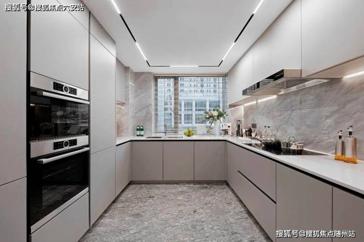 餐厅后侧的厨房采用U型设计,操作动线流畅。整体配备博世四件套+嘉格纳的灶具,一步到位,省去了后期升级的麻烦。橱柜也是进口品牌整体定制的,功能性强大。
