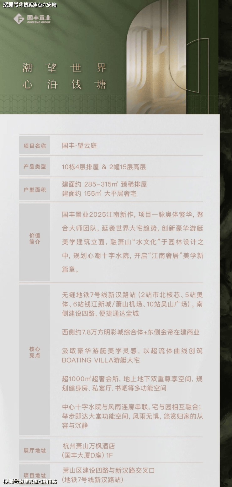 国丰·望云庭的公区营造,超越了传统意义上的功能主义,它通过对高阶材质的匠心运用、对多元生活场景的精心赋能,将归家动线转化为一段充满仪式感的旅程。目前,项目城市展厅已经开放,建面约285-315㎡臻稀排屋和建面约155㎡大平层奢宅正预约中!国丰望云庭✅杭州国丰望云庭售楼热线:☎ 400 832 8823「售楼处」☎〢🔻已认证〢◆🔻