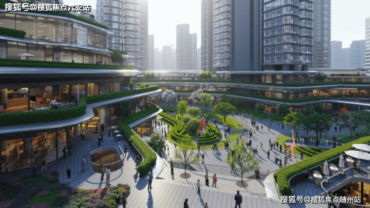 商务配套:对标伦敦市政厅广场的中心广场,含14000方立体景观(7座空中花园、屋顶跑道),办公间隙可享自然与艺术;